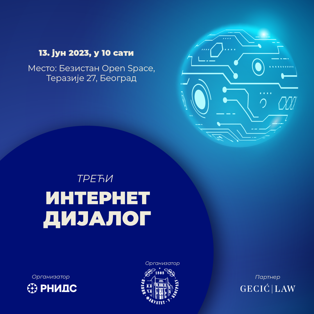 Fondacija „Registar nacionalnog internet domena Srbije“ (RNIDS) i Pravni fakultet Univerziteta u Beogradu treći put organizovaće konferenciju „Internet dijalog“. Konferencija se održava 13. juna 2023. godine sa početkom u 10 časova u prostoru „Bezistan”, Terazije 27.