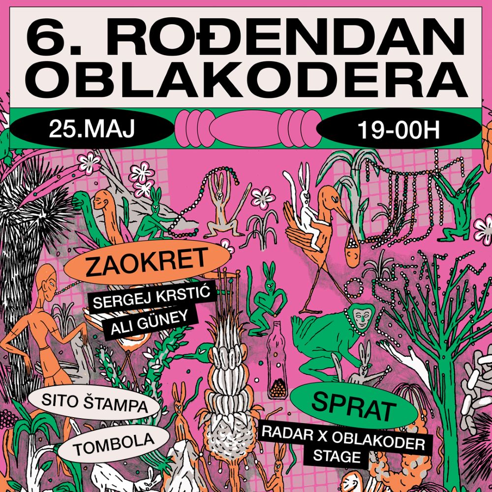 Tradicionalno, u subotu, 25. maja, Oblakoder magazin proslavlja 6. rođendan u barovima Sprat i Zaokret (Cetinjska 15). Tom prilikom premijerno će biti predstavljeno 4. štampano godišnje izdanje Oblakodera, koje je pripremano u prethodnom periodu.