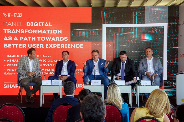 Na panelu pod nazivom „Digitalna tranformacija – put ka boljem korisničkom iskustvu“ uvaženi gosti iz različitih industrija razmenili su svoja razmišljanja na temu trendova digitalitalne transformacije kroz značaj digitalizacije u kontekstu povezivanja državnog i realnog sektora, unapređenja edukacije i ubrzanog tehnološkog razvoja. Učesnici panela bili su: Mihailo Jovanović, e-Uprava, prof. dr Miroslav Marić, Matematički fakultet, Univerziteta u Beogradu, Rajko Mandić, Ananas i Veselin Jevrosimović, Comtrade.