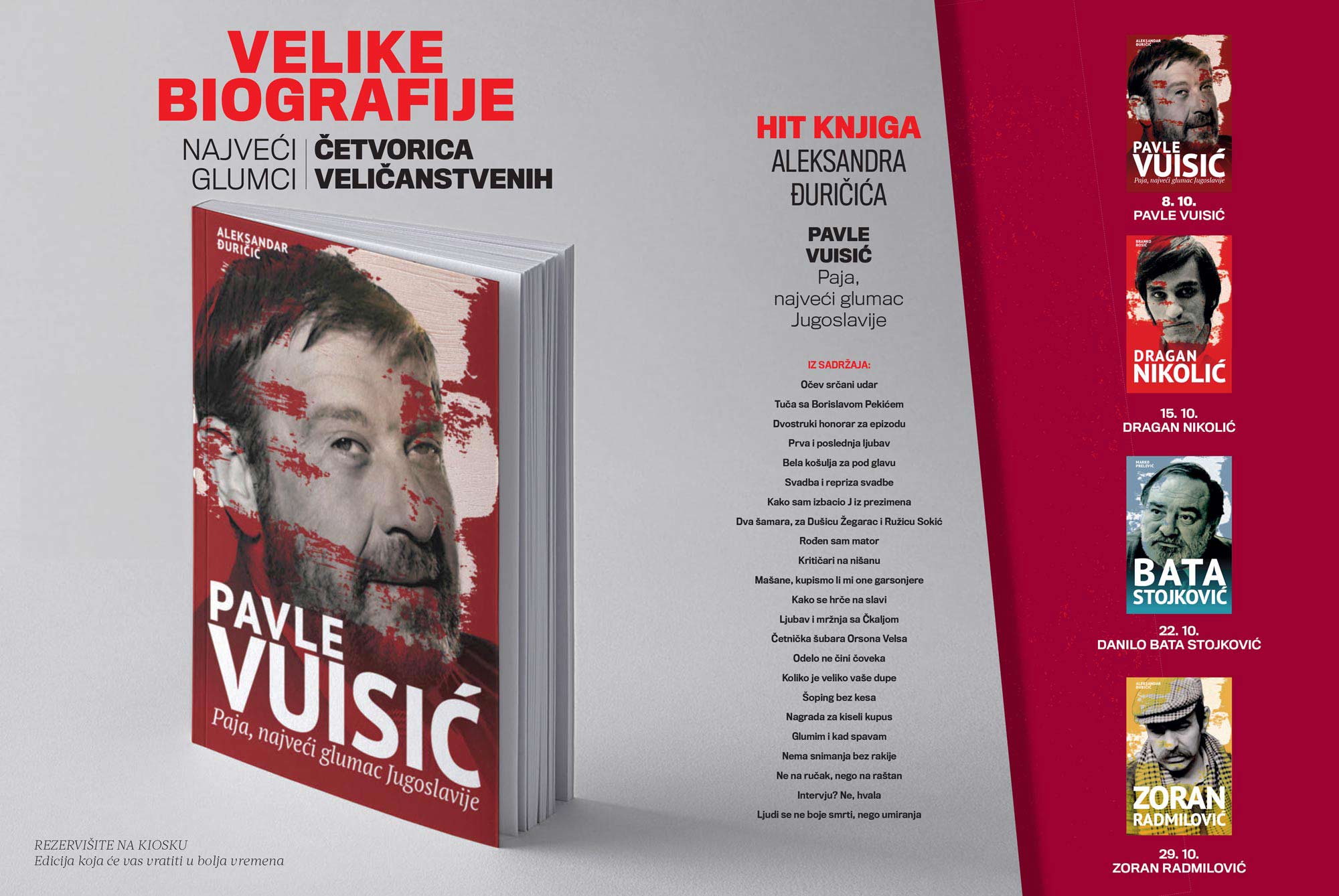 Svi čitaoci Nedeljnika od 8. oktobra na poklon dobijaju hit knjigu o Paji Vuisiću, a potom u narednim brojevima ćete moći da čitate nepoznate priče iz života Dragana Nikolića, Bate Stojkovića, Zorana Radmilovića.