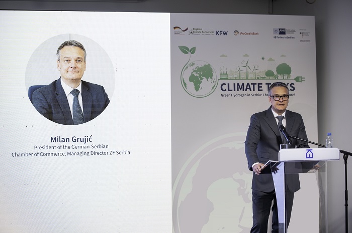 Nemačko-srpska privredna komora, u partnerstvu sa KfW i ProCredit Bank Srbija, održala je drugu po redu konferenciju iz serije CLIMATE TALKS pod nazivom Zeleni vodonik u Srbiji: izazov budućnosti. Konferencija se bavila temom zelenog vodonika kao jednim od ključnih elemenata energetske tranzicije.