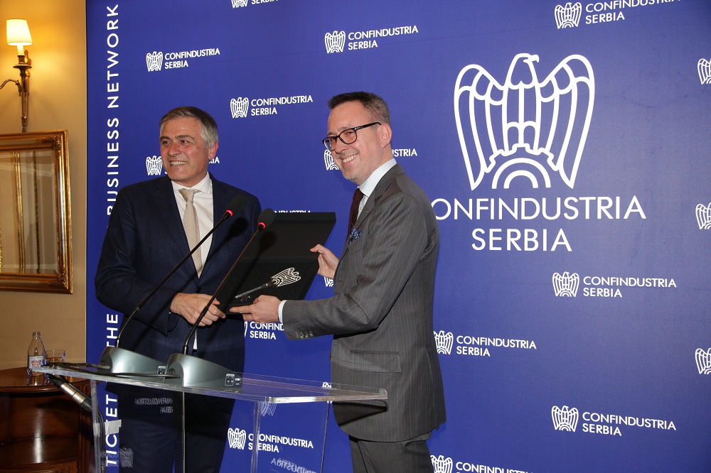 Novi predsednik Konfindustrije Patricio Dei Tos je tom prilikom izmedju ostalog izjavio: „Uveren sam da je za nas privrednike koji poslujemo u stranoj državi jedan od prioriteta stalna i bliska saradnja sa lokalnim institucijama. Samo zahvaljujući odnosu poverenja, sklada, dijaloga, suočavanja i razmene znanja, moguće je privređivati sa jasnim ciljem i izvući maksimum iz naših poslovnih projekata. Ova država pruža nam nešto veoma dragoceno za naše poslovanje, a to su saradnici. Saradnici koji potiču iz poslovne i radne kulture, zahvaljujući čemu poseduju veštine, profesionalizam i identitet, a sve to olakšava poslovanje italijanskim kompanijama u Srbiji.“