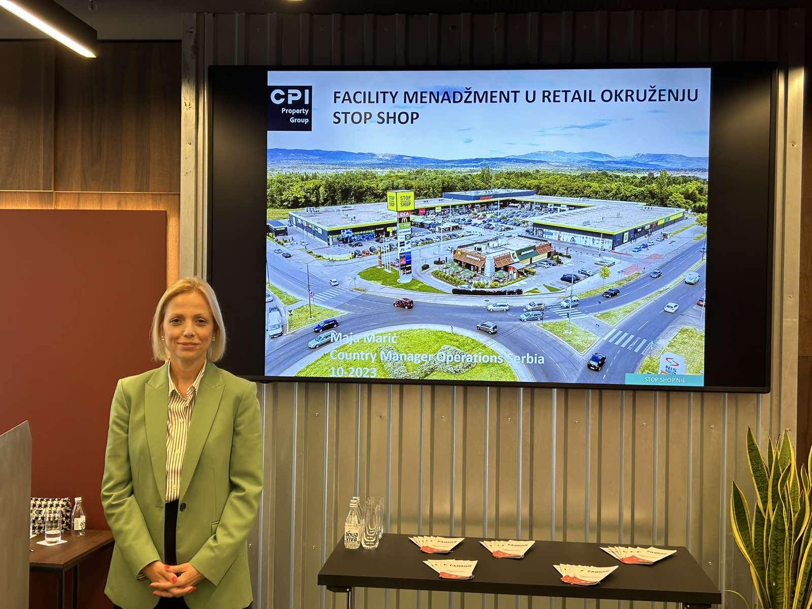 Govoreći iz ugla jednog od najvećih korisnika ovih usluga u retail okruženju, menažerka operacija CPI Property Group za Srbiju Maja Marić predstavila je studiju slučaja STOP SHOP ritejl parkova. Ona je objasnila na koji način STOP SHOP koristi FM usluge za održavanje svojih objekata na 14 lokacija u Srbiji.