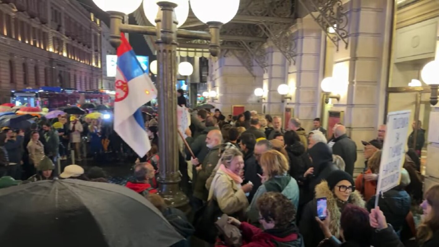 Saobraćaj na Trgu Republike oko Narodnog pozorišta je zaustavljen, usled velikog broja građana i studenata koji su došli na protest.