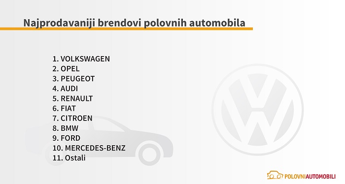 Kupci polovnih automobila i ove godine pokazuju poverenje u nemački kvalitet, te nije novina da se još jednom na prvom mestu liste najprodavanijih brendova polovnjaka našao „nemac.“ Ipak, pored nemačkih automobila na prvih pet mesta su i „francuzi.“ Nakon Volkswagena, brenda koji čini čak 20% svih prvi put registrovanih polovnjaka u Srbiji u tekućoj godini, drugo mesto zauzeo je Opel, zatim Peugeot, pa Audi i Renault.
