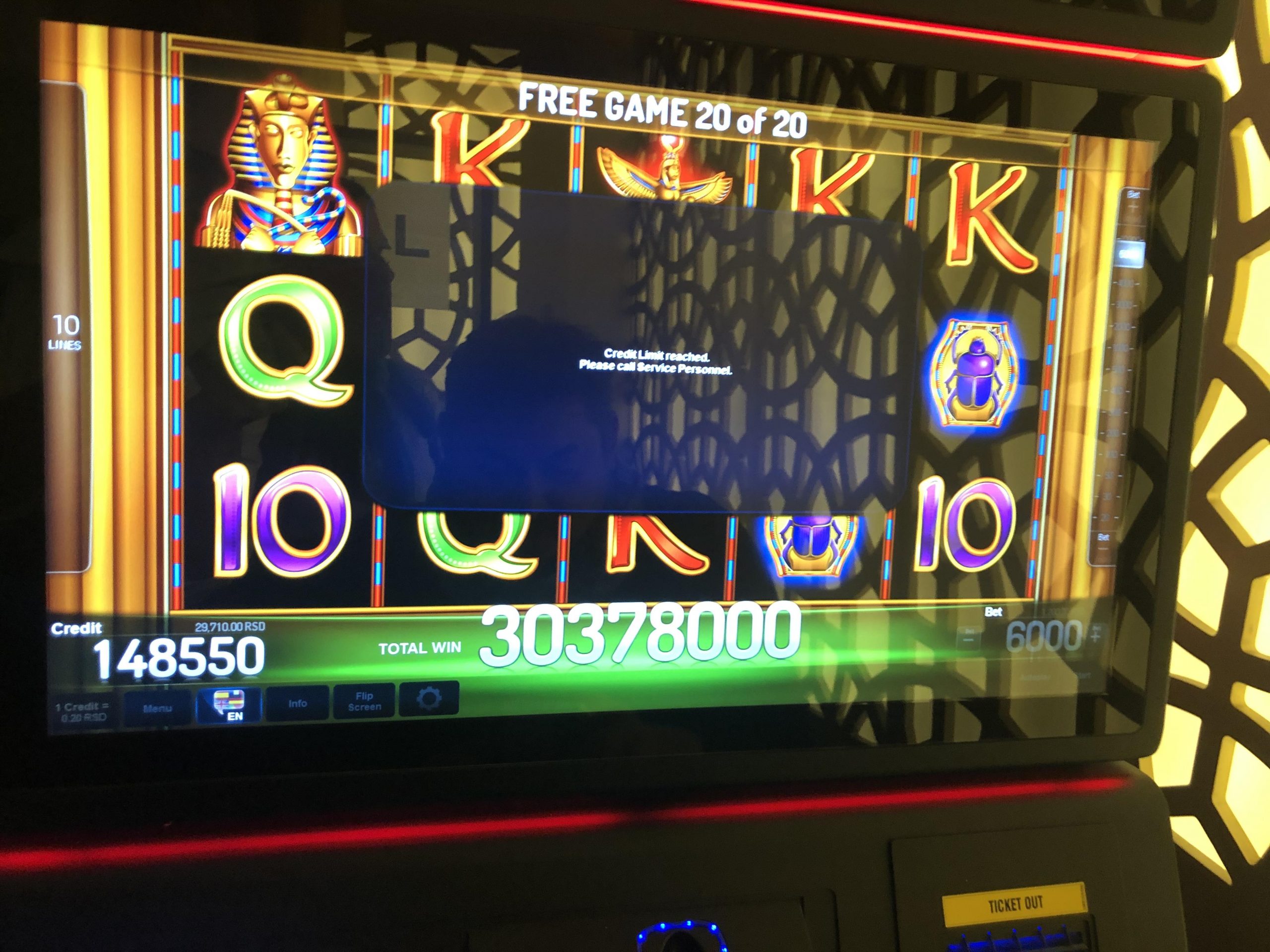 Tokom igre, P.M. je stigao do 20 besplatnih ruku, igrajući na betu od 1200 dinara. Petnaestu od ukupno 20 besplatnih igara pamtiće čitavog života. Upravo je toliko puta pritisnuo dugme na besplatnim igrama, kada mu se pred očima ukazala neverovatna suma od 6 miliona dinara.