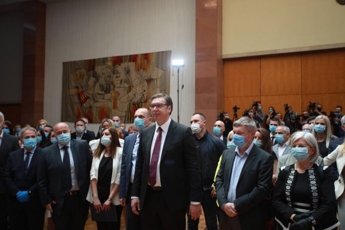 Plakat SNS na kojem se pored lidera stranke i predsednika Srbije Aleksandra Vučića prikazuju i lekari iz Kriznog štaba Predrag Kon i Branislav Tiodorović, kao i direktor Klinike za infektivne bolesti Kliničkog centra Srbije Goran Stevanović, izazvao je reakcije na društvenim mrežama, ali i reakciju iz same stranke odakle poručuju da to nije njihov plakat.