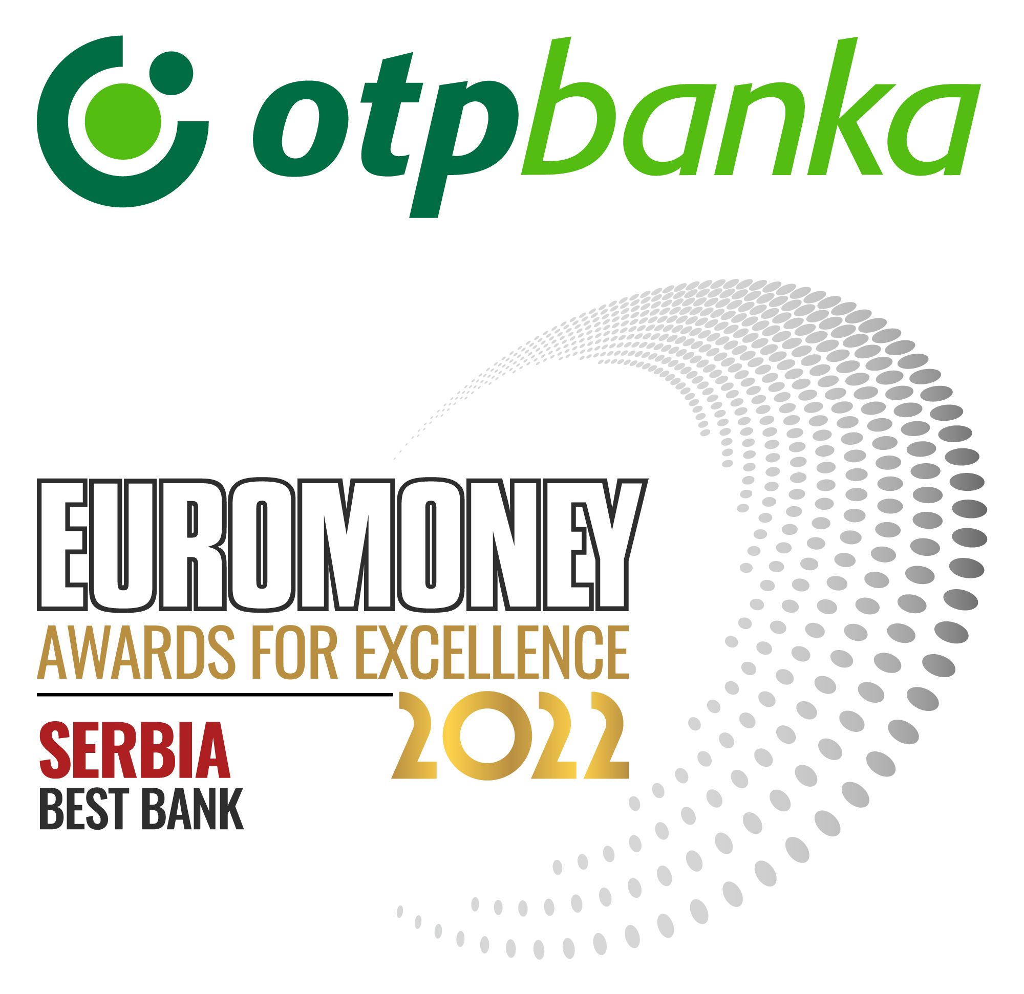 OTP banka Srbija proglašena je za “Najbolju banku u Srbiji” na dodeli godišnjih nagrada svetski renomiranog magazina Euromoney. Reč je tradicionalnoj „Euromoney nagradi za izvrsnost 2022“ (Euromoney Awards for Excellence 2022) koja se dodeljuje finansijskim institucijama koje klijentima pružaju najviši nivo usluge, inovacija i stručnosti.