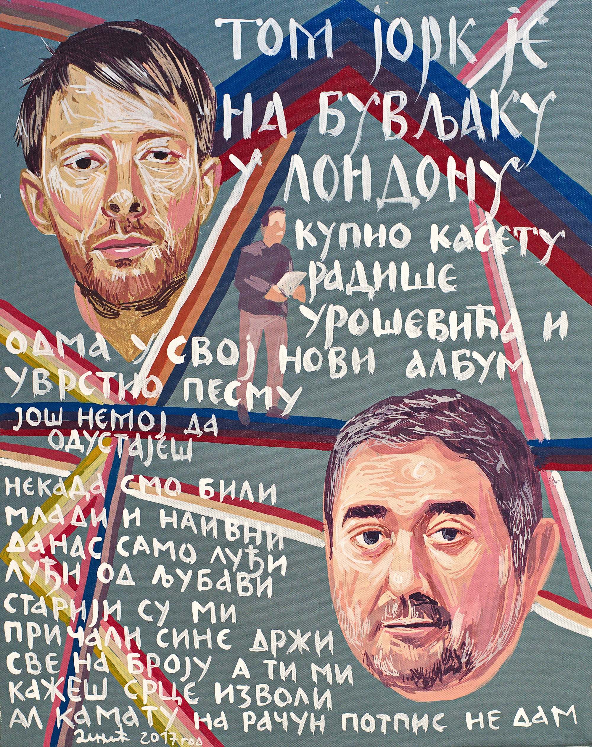 Na izložbi će biti predstavljena dela Marije Dragojlović, Raše Teodosijevića, Marine Marković, Srđana Apostolovića, Aleksandra Leke Mladenovića, Tadije Janičića, Uroša Đurića, Miće Stajčića, Srđana Markovića Đileta, Aleksandra Denića, Biljane Đurđević, Vuka Vidora, Andreja Josifovskog – Pijaniste, Petra Mošića, Saše Markovića – Mikroba, Sane Garić, Mine Radović, Dejana Rackovića, Aleksandra Zografa i Milana Miladinovića.