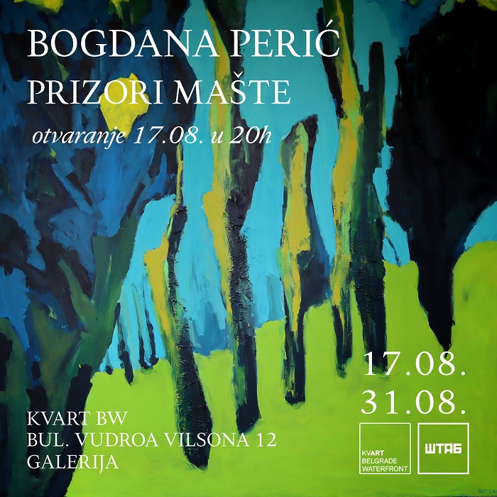 Izložba „Prizori mašte“ umetnice Bogdane Perić biće otvorena u sredu, 17. avgusta u 20 časova u izložbenom prostoru KvArt BW,na drugom spratu Galerije.