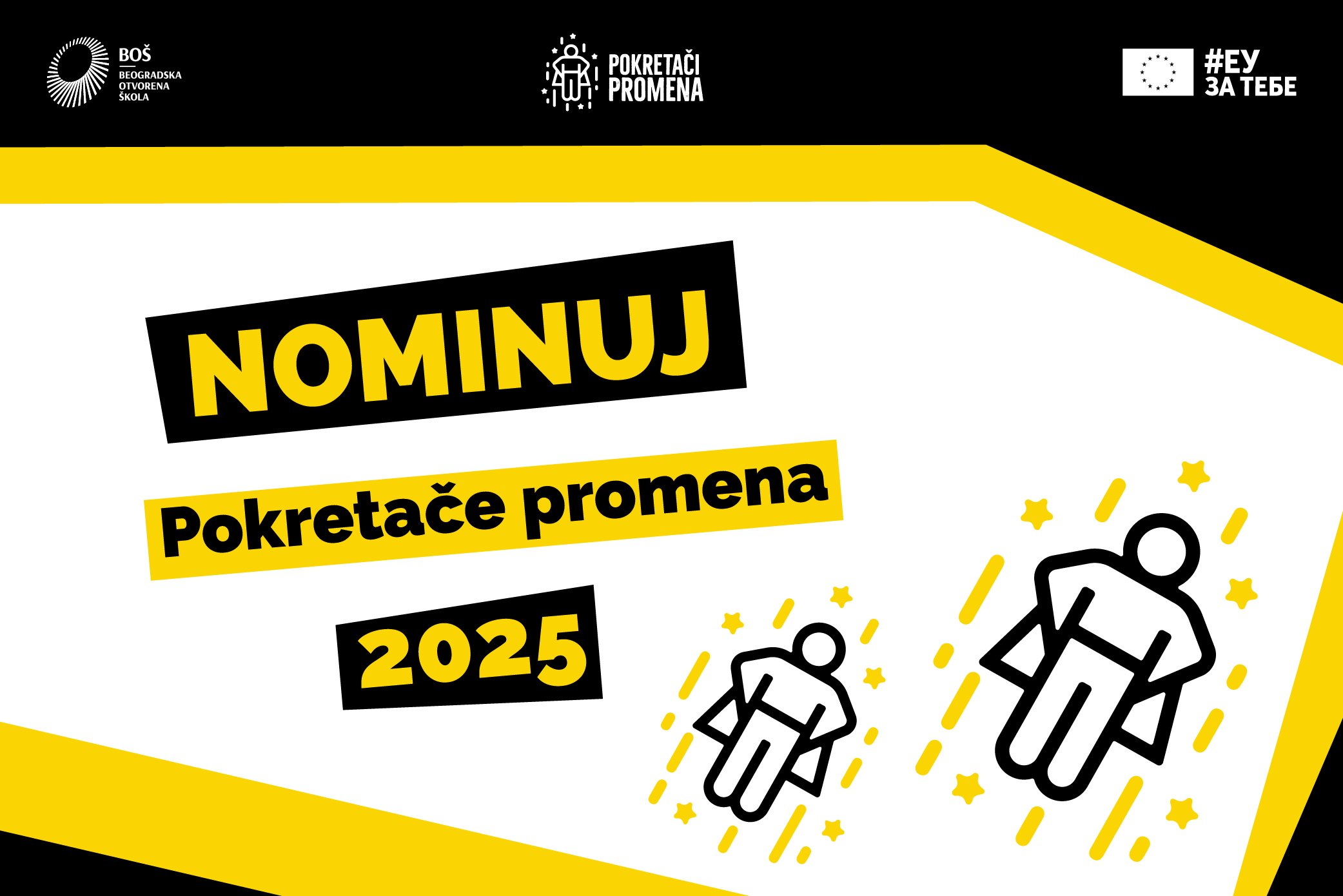 Beogradska otvorena škola (BOŠ), već sedmu godinu zaredom, dodeljuje nagrade Pokretači promena i poziva građane da nominuju one koji svojim radom menjaju zajednicu na bolje. Godišnja nagrada slavi aktivne građane koji istrajavaju u naporima da poboljšaju živote svih nas, pruža priznanje i prepoznavanje, kao i finansijsku i medijsku podršku najuspešnijim i najupornijim pojedincima, neformalnim grupama i organizacijama civilnog društva.