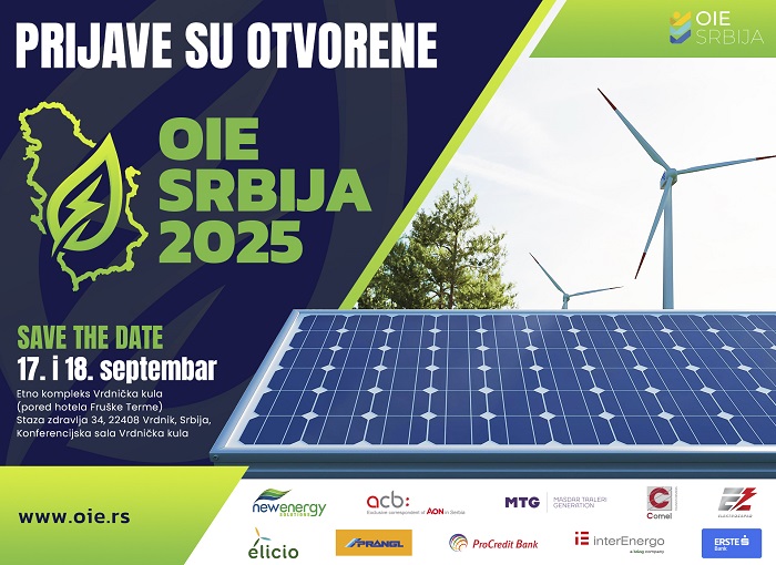 Udruženje OIE Srbija objavljuje da su prijave za konferenciju OIE SRBIJA 2025 zvanično otvorene. Konferencija će biti održana 17. i 18. septembra u etno kompleksu Vrdnička kula na Fruškoj gori i okupiće poslovnu zajednicu, investitore, predstavnike međunarodnih organizacija, institucija i vodećih energetskih kompanija, sa ciljem zajedničkog sagledavanja ključnih izazova i prilika u oblasti zelene energije.