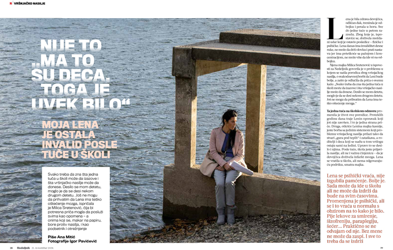 U Nedeljnik je u sredu 29. januara stigao Zahtev za pokretanje prekršajnog postupka Ministarstva kulture i informisanja u kojem se traži da se oglasim krivim zato što sam „učinio prepoznatljivim dete u tekstu o vršnjačkom nasilju“, objavljenom pre više od dva meseca, odnosno 21. novembra 2019. godine, pod naslovom „Nije to ‘Ma to su deca, toga je uvek bilo’, moja Lena je ostala invalid posle tuče u školi“.
