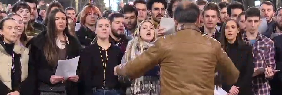 Blokadni hor, koji čine studenti i saradnici koji učestvuju u 24-časovnoj blokadi na Autokomandi, obeležio je današnji praznik Savindan na nesvakidašnji način.