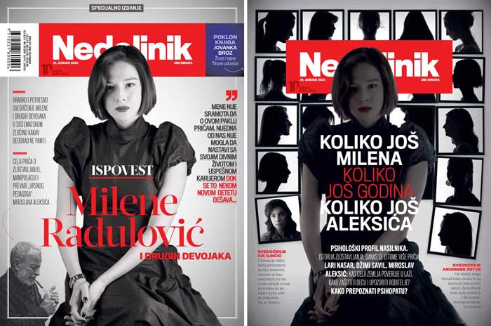 Novinari Nedeljnika razgovarali su sa nekoliko devojaka koje su imale slična iskustva kao Milena, a koje još nisu imenom i prezimenom izašle u javnost. Neke od njih će to verovatno učiniti. Neke će svedočiti anonimno. Neke će, razumljivo je i to, i ovog puta odlučiti da ćute. Ali, čak i ako tako bude, od danas, posle Milene i njenih koleginica, one će makar znati da nisu bile ni krive ni odgovorne za ono što im se dogodilo.