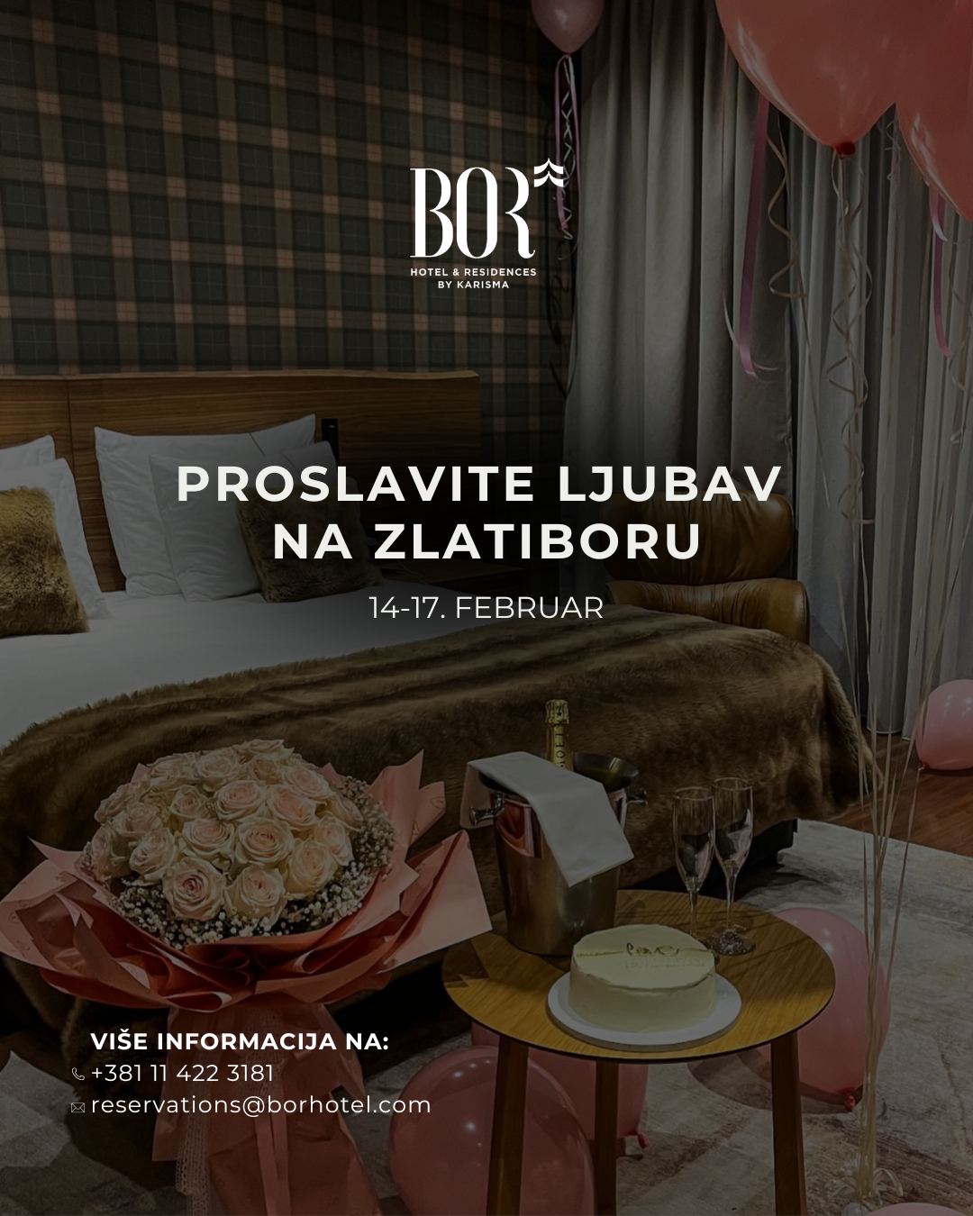 Ukoliko je razlog vašeg putovanja slavljenje ljubavi i zamislili ste romantičnu večeru u restoranu ili pak šampanjac u sobi ili biste želeli da odmorite sa porodicom, odgovor je isti – za lokaciju birajte jedan od najnagrađivanijih hotela u zemlji koji se nalazi baš na Zlatiboru. Reč je o BOR Hotelu by Karisma u kom se susreću raskoš, harmonija i udobnost, tako da zadovolje sva vaša čula. Interesantno je da je ovo i hotel koji je najbolje ocenjen na popularnoj platformi za rezervaciju smeštaja Booking, gde nosi oznaku Izuzetan i ocenu 9,7!