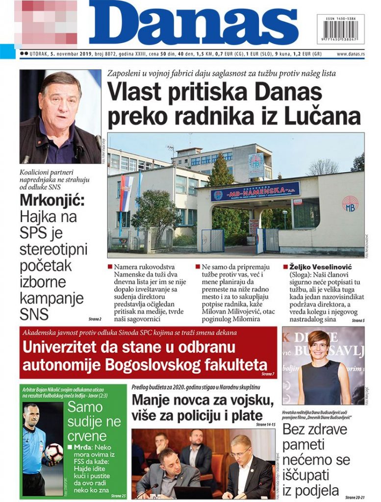 NASLOVNE STRANE DNEVNIH NOVINA: