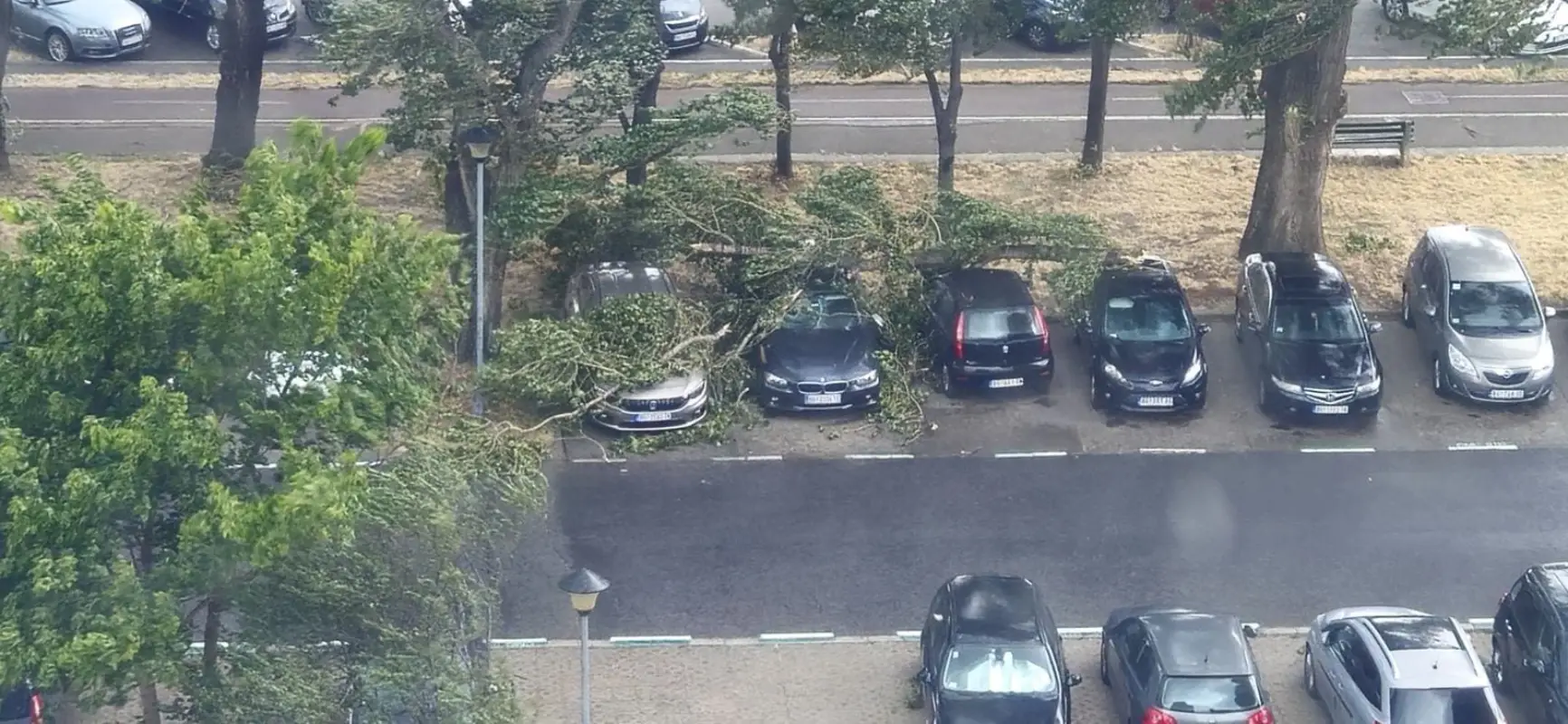U bloku 23 vetar je srušio granu koja je pala na automobile.