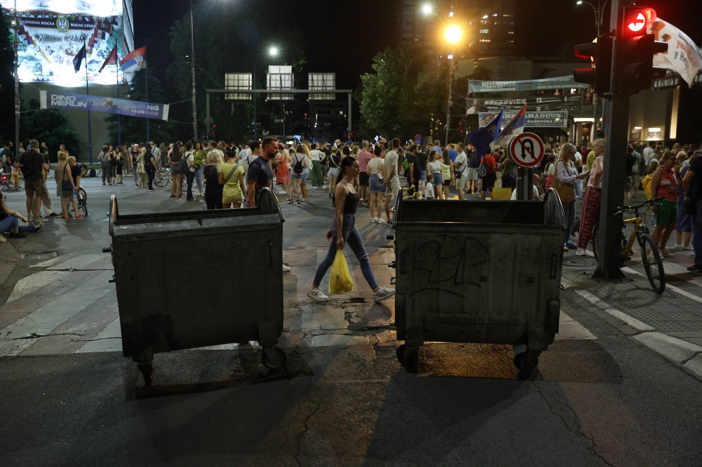 Nakon upozorenja policije, okupljeni su prešli kod Tržnog centra „Delta planet“ i takođe prelaženjem pešačkog prelaza blokirali kružni tok.