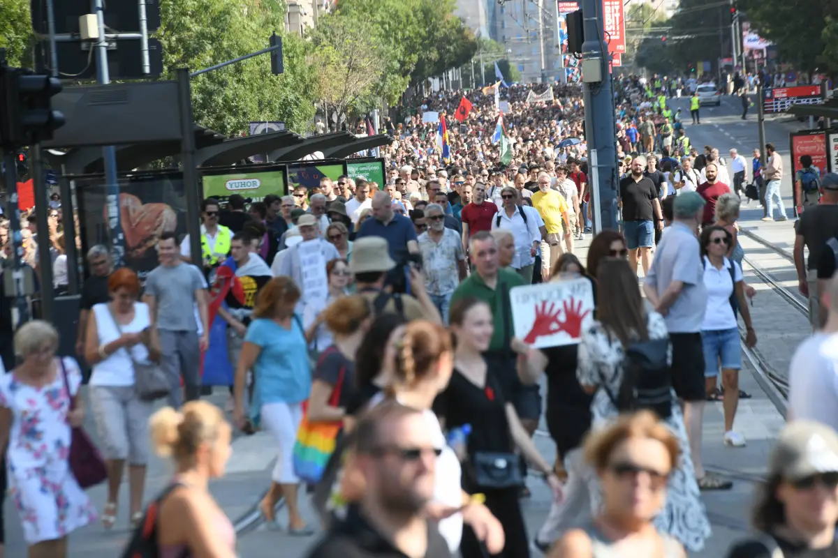 Dolazak ispred sedišta MUP-a u Bulevaru Zorana Đinđića, gde je saobraćaj bio blokiran, usledio je nakon protestne šetnje duge više od šest kilometara.