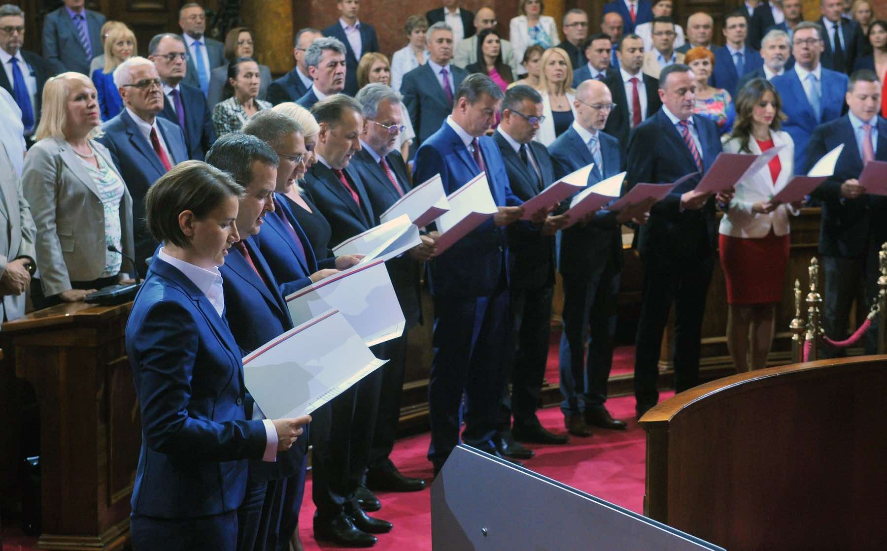 Nakon donošenja odluke o potvrđivanju mandata, narodni poslanici polažu zakletvu čiji tekst glasi: „Zaklinjem se da ću dužnost narodnog poslanika obavljati predano, pošteno, savesno i verno Ustavu, braniti ljudska i manjinska prava i građanske slobode i po najboljem znanju i umeću služiti građanima Srbije, istini i pravdi!“