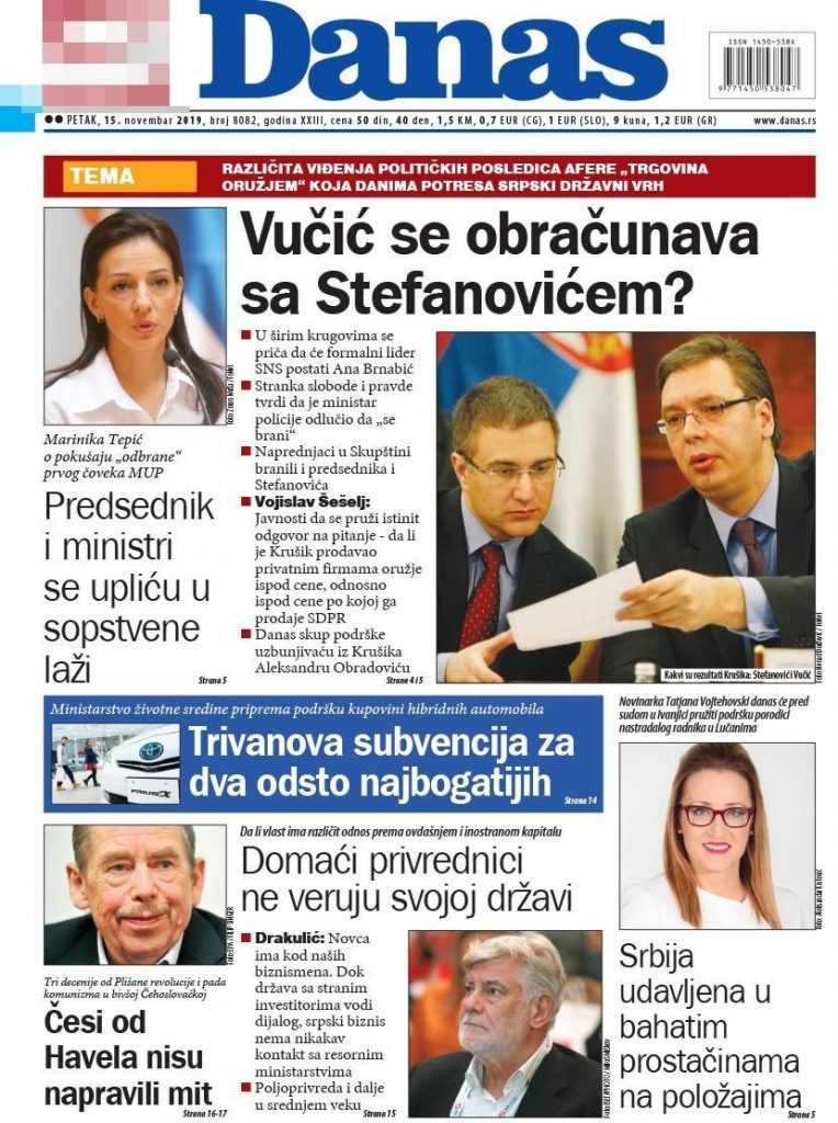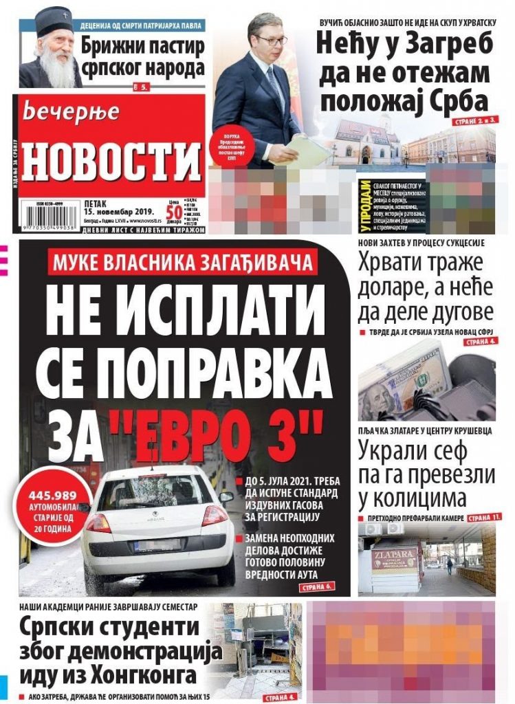 NASLOVNE STRANE DNEVNIH NOVINA: