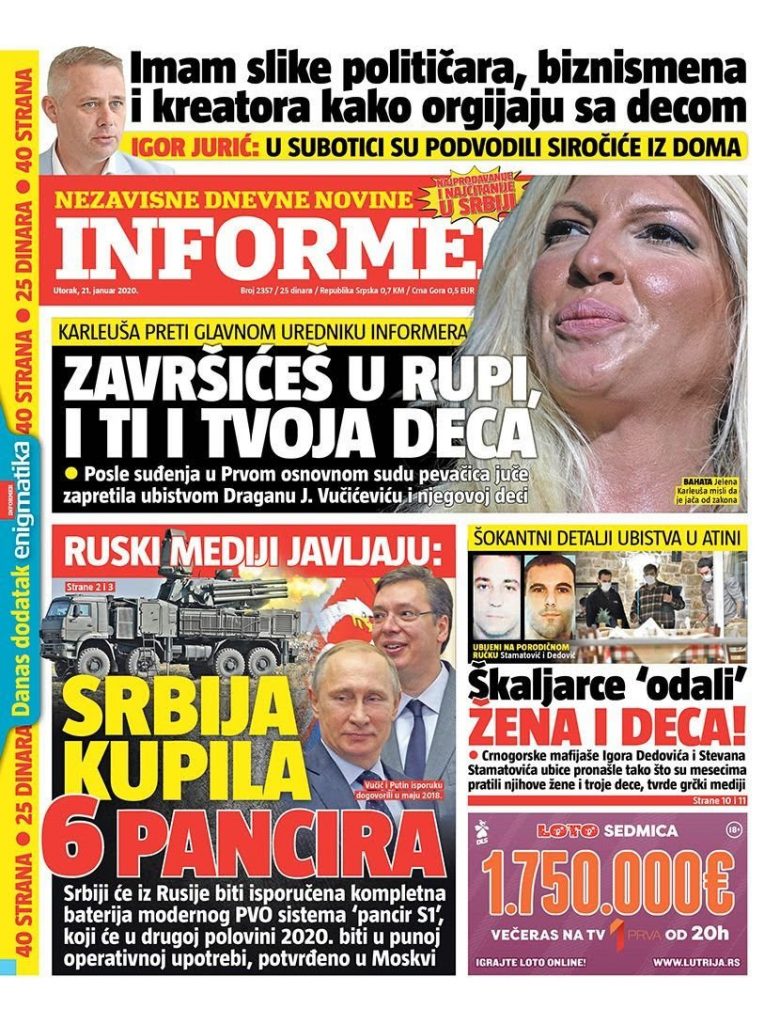 NASLOVNE STRANE DNEVNIH NOVINA: