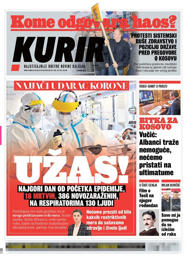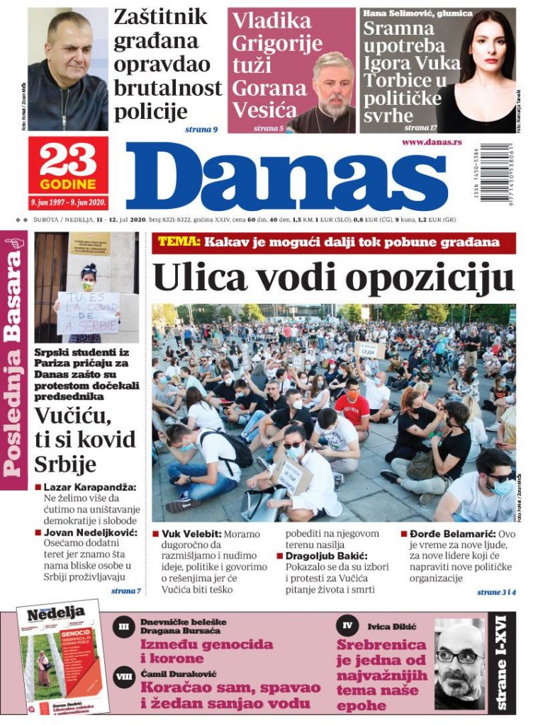 GOJKOVIĆ OSUDILA NASILJE I NEREDE ISPRED SKUPŠTINE – Predsednice Narodne skupštine Maje Gojković najoštrije je osudila demonstracije koje su se sinoć odigrale ispred zgrade parlamenta, uz ocenu “da su maske potpuno pale” i da “inspiratori ovih nereda ne prezaju da pribegnu najgnusnijem nasilju kao poslednjem izlazu”.