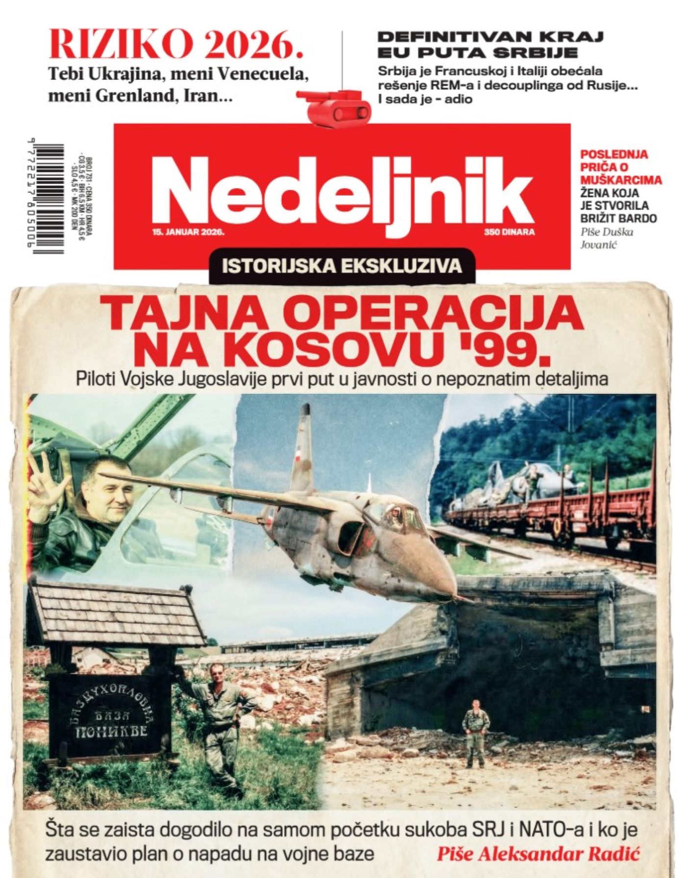 U novom broju Nedeljnika čeka vas istorijska ekskluziva u kojoj Aleksandar Radić otkriva sve o tajnoj operaciji iz rata na Kosovu 1999. godine, šta se zaista dešavalo u prvim danima sukoba SRJ i NATO-a, kako su izgledali planovi da se kasetnim bombama bombarduju NATO baze u regionu, kakvo je bilo raspoloženje u avijaciji, kao i zašto je Slobodan Milošević odustao od operacije.