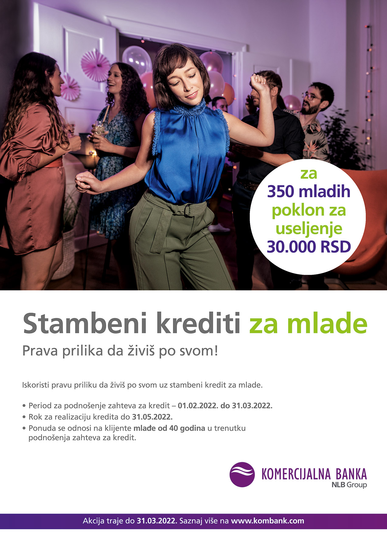 Posle velikog interesovanja za akciju Prava prilika da živiš po svom, Komercijalna banka, članica NLB Grupe, nastavlja da podržava mlade do 40 godina u rešavanju stambenog pitanja, i tako ih motiviše da svoje živote nastave da grade u našem regionu.