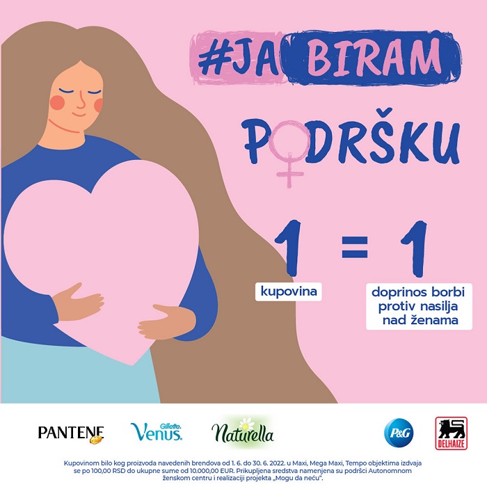 Ukoliko i vi želite da podržite žrtve nasilja da istupe, ali i pomognete u podizanju svesti o ovoj važnoj temi, možete to učiniti kupovinom bilo kog proizvoda navedenih brendova tokom juna u svim Maxi, Mega Maxi, Tempo i Shop&Go prodavnicama širom Srbije. Od svakog kupljenog proizvoda, kompanija Procter&Gamble izdvojiće po 100,00 RSD do ukupne sume od 10.000,00 EUR, a prikupljena sredstva namenjena su podršci za realizaciju projekta „Mogu da neću – Ljubav nije nasilje“ Autonomnog ženskog centra.