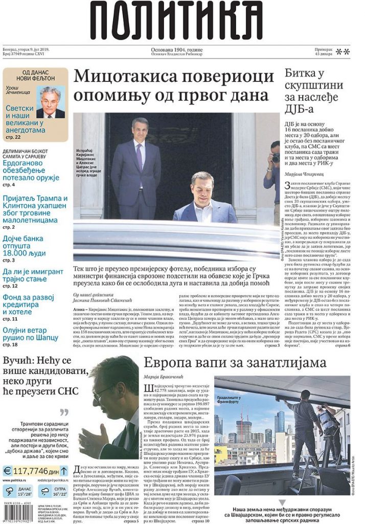 OBJAVLJEN SASTAV NOVE GRČKE VLADE – Novi grčki premijer Kirijakos Micotakis imenovao je danas članove svog kabineta poverivši svojim saradnicima rukovođenje ključnim resorima, prenosi Katimerini.