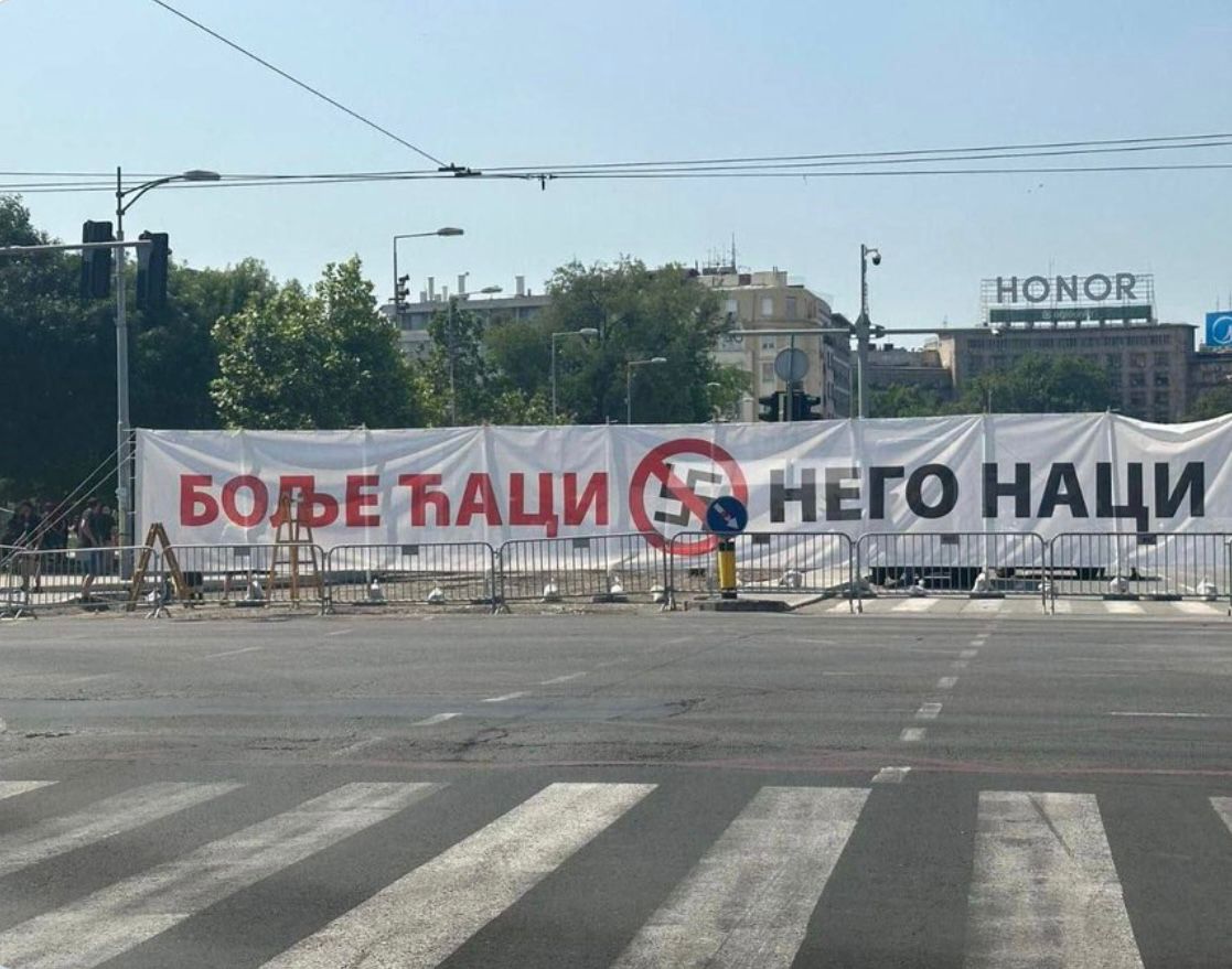U saopštenju MUP-a se navodi da je oko 15.40 časova, na raskrsnici Bulevara kralja Aleksandra i Kneza Miloša, perorezom oštetila transparent organizacije Studenti 2.0 koji se tamo nalazio.
