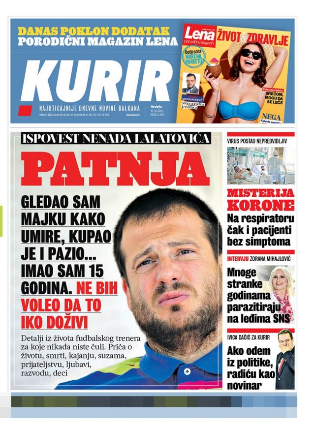 KURIR – List objavljuje intervju sa fudbalskim trenerom Nenadom Lalatovićem „Gledao sam majku kako umire kupao je i pazio…“. Misterija korone, piše dnevnik, je da su na respiratorima čak i pacijenti bez simptoma.