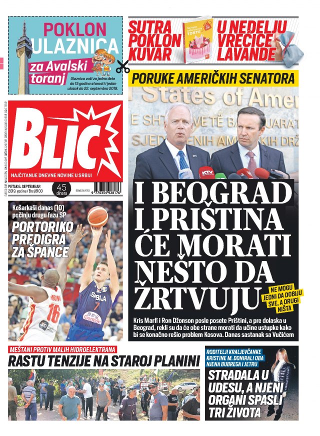 NASLOVNE STRANE DNEVNIH NOVINA: