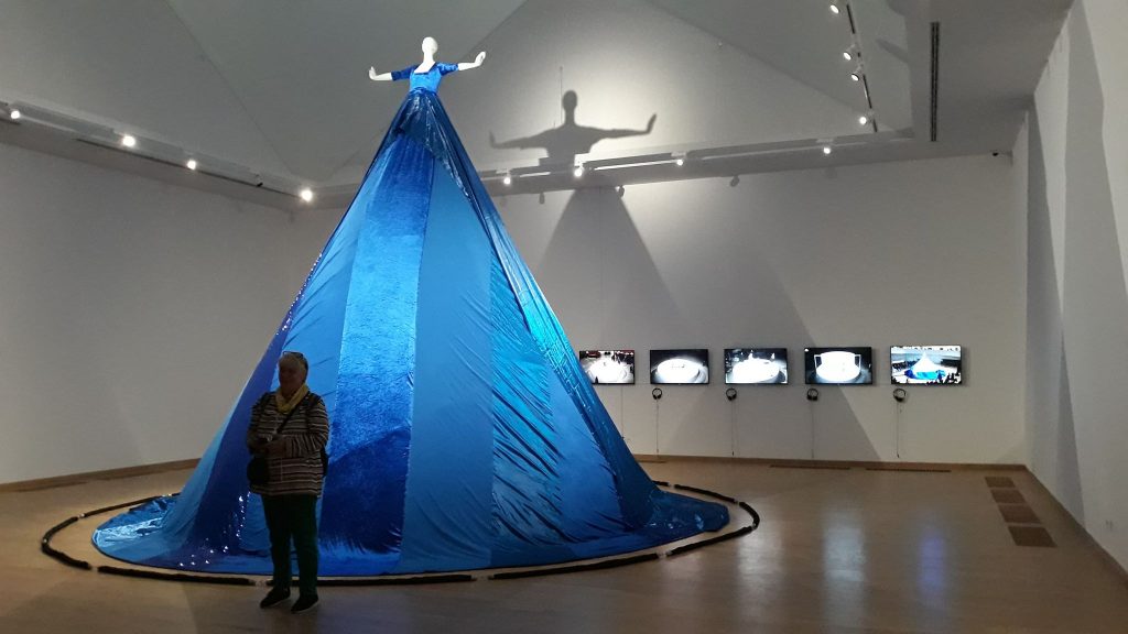 Skoro pola jednog sprata izdvojen je za veliku, ogromnu Marininu plavu haljinu koja se spušta sa lutke postavljene na platformi visokoj do muzejskog plafona. Marina je tu haljinu, na isti način, nosila u perfomansu „Stupanje na drugu stranu“, izvedenom u Muzeju Solomona R. Gugenhajma u Njujorku, 1972. godine.