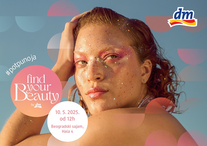 Šta za tebe znači pronaći sopstvenu lepotu? Odgovor te čeka na Find Your Beauty događaju, koji kompanija dm organizuje 10. maja 2025. u Hali 4 Beogradskog sajma! Spremi se za dan ispunjen inspiracijom, negom, kreativnošću i brojnim poklonima, jer ćemo zajedno otkriti šta znači biti #potpunoja – originalna osoba, posebna i blistava iznutra i spolja!