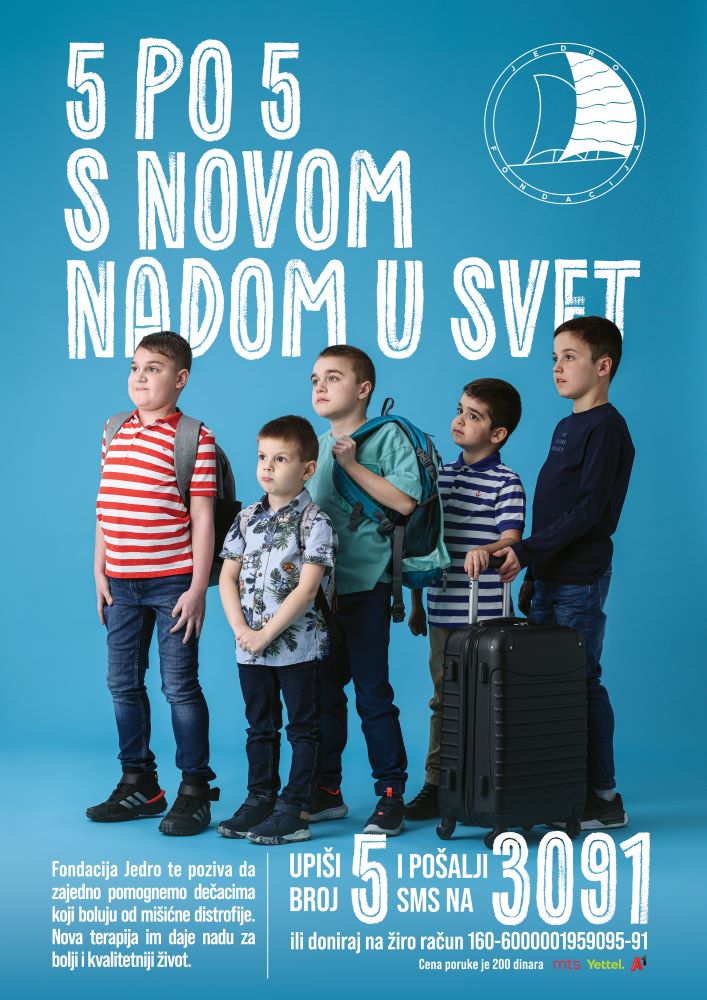 Ipak, najnovija terapijska procedura koju su već primili neki oboleli dečaci, a koja jeste primenjiva i za ovih pet dečaka u dosadašnjoj primeni je dala dobre rezultate u usporavanju, pa i zaustavljanju bolesti. Međutim, proizvodnja leka i terapija su takvi da lečenju istovremeno mora biti podvrgnuto petoro mališana. S obzirom na prirodu bolesti i progresivno propadanje mišića, vreme je presudni faktor, te je naročito važno da petorica obolelih dečaka što pre budu podvrgnuti terapiji. Na žalost, kako se radi o novom vidu terapije, ne postoji mogućnost da trošak bude pokriven sredstvima koja obezbeđuje država, pa je humanitarna akcija u cilju prikupljanja sredstava za lečenje obolelih dečaka jedini način da se oni spasu. Kako su istakli u Fondaciji „Jedro” ova petorica mališana „odabrani” su zbog progresivnog širenja bolesti, a pre svega zbog nemogućnosti da se primeni neka od postojećih terapija koje bi obnovile proizvodnju nedostajućeg proteina. Fondacija će i nakon prikupljanja sredstava za petoricu dečaka nastaviti, kroz različite aktivnosti, da pomaže i ostale dečake obolele od Dišenove mišićne distrofije u Srbiji i da im otvara put za ovu ili neke druge spasonosne terapije.