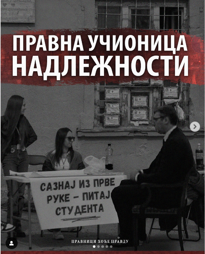 Studenti u blokadi Pravnog fakulteta u Beogradu izdali su saopštenje, obraćajući se predsedniku Aleksandru Vučiću, po pitanju njegove nadležnosti. Saopštenje koje su nazvali „pravna učionica nadležnosti“, prenosimo u celosti: