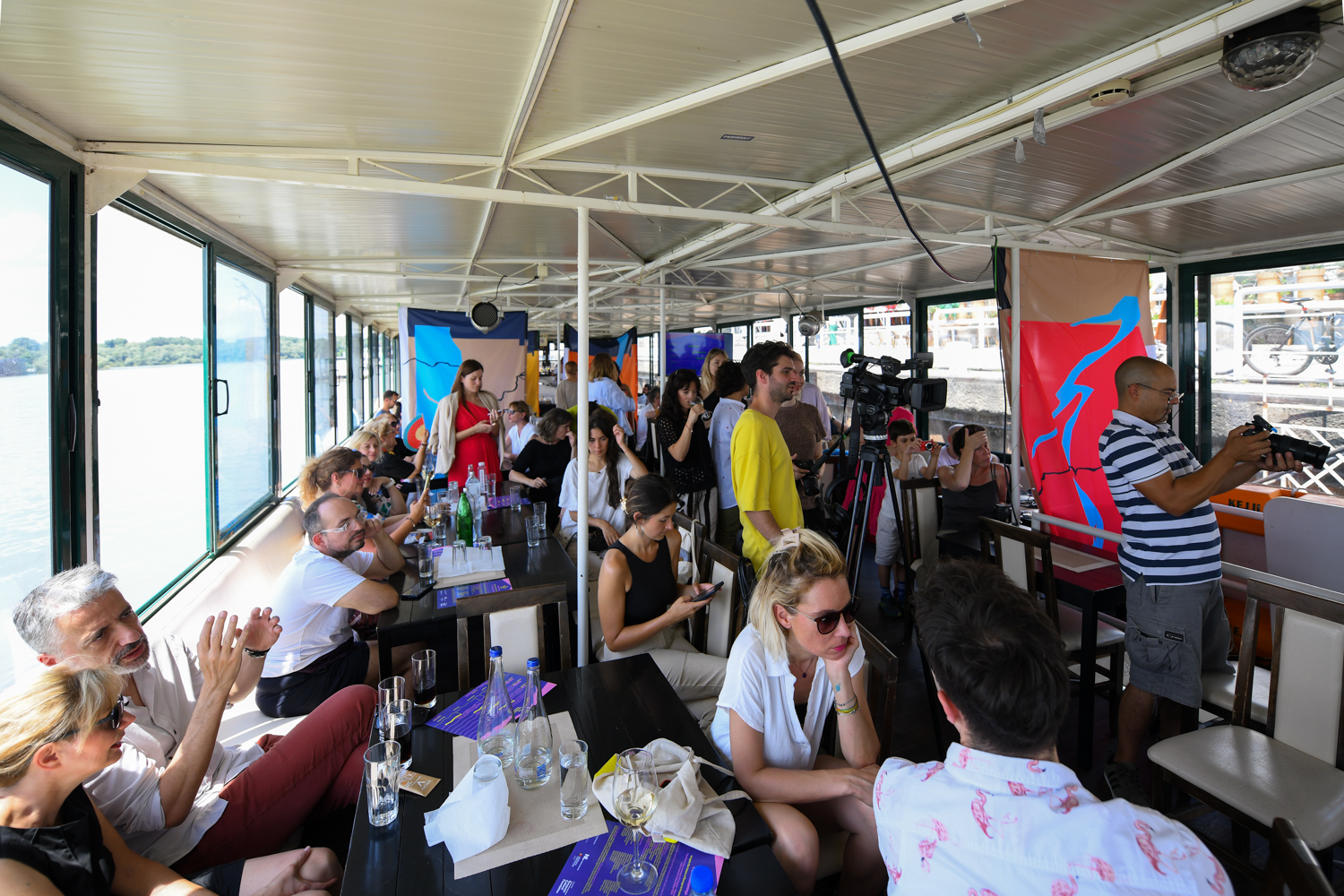 U subotu, 29. juna, plovidbom brodom “Kej 2” po ušću Save u Dunav u Beogradu, započela je internacionalna manifestacija “Evropski paviljon 2024: Liquid Becomings”. Na ovom događaju objavljena je lista umetnika i umetnica koji će učestvovati na plovećim rezidencijama. Premijerno je izvedena pesma koja prati Paviljon „Motility“ Marije Balubdžić, kao i „Četiri jedra“, prikazi rečnih putanja, otisci na tekstilu Siniše Ilića. Domaćini ovog događaja ispred grupe kustosa i producenata bili su, Annette Mees, Olga Uzikaeva, Naomi Russell iz Stichting Passaros/espaco agora now, Bojan Đorđev, Siniša Ilić i Dragana Jovović iz organizacije Udruženi umetnički rad.