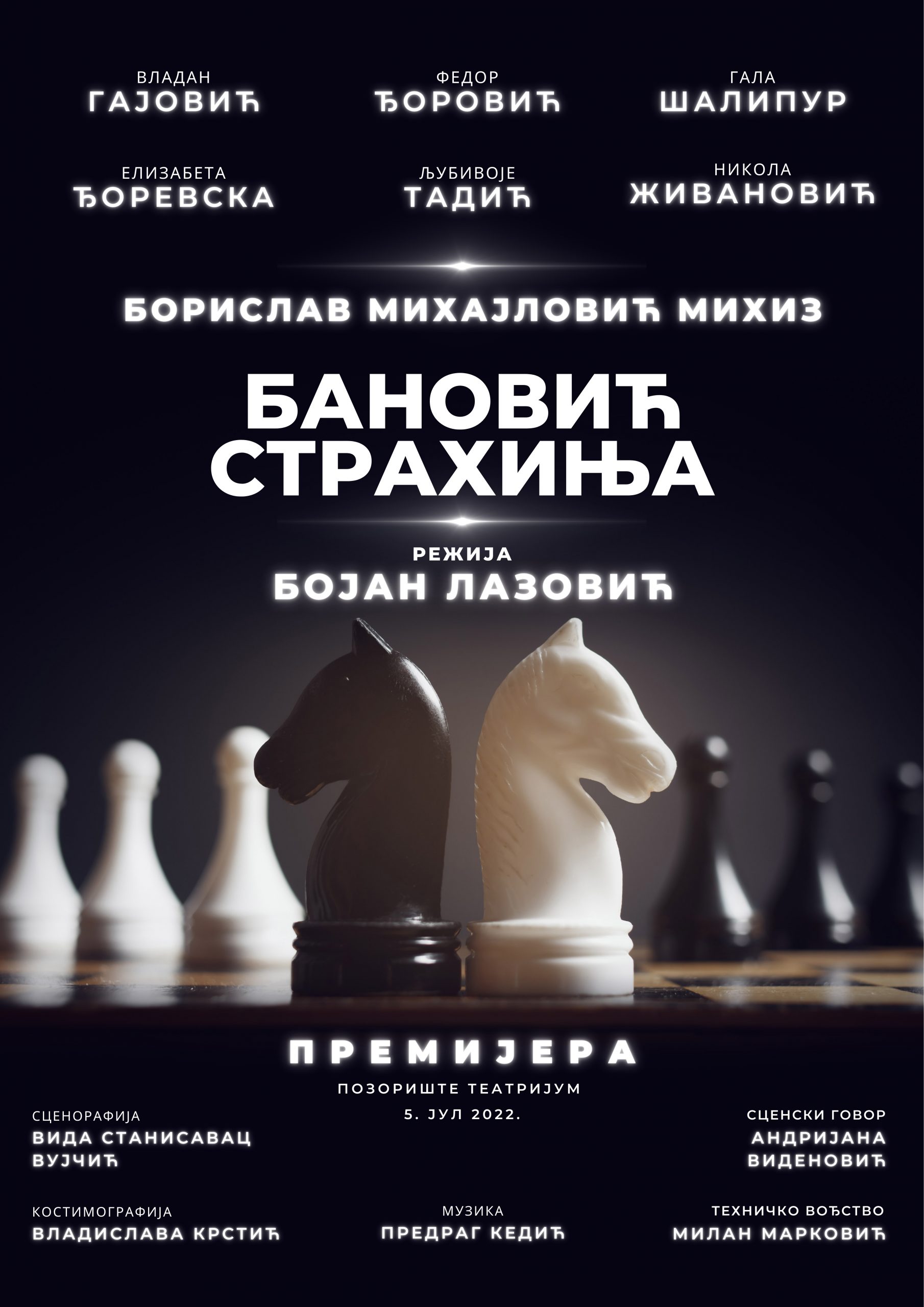 05. jula u 21h biće premijerno izvedena predstava „Banović Strahinja“ po tekstu Borislava Mihajlovića – Mihiza, a u režiji Bojana Lazovića. Mladi glumac Fedor Đorović igraće Banović Strahinju, a u predstavi igraju i Vladan Gajović, Gala Šalipur, Beta Đurevska i Nikola Živanović. Ova predstava je rađena u koprodukciji pozorišta Teatrijum i CEBEF-a.