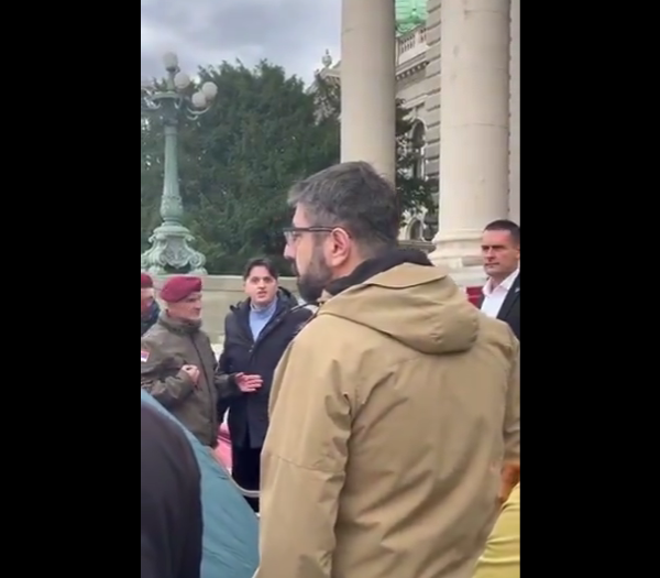Danas je ispred Skupštine Srbije došlo do sukoba između Radomira Lazovića, narodnog poslanika iz Zeleno-levog fronta (ZLF) i Uglješe Mrdića, narodnog poslanika iz Srpske napredne stranke.