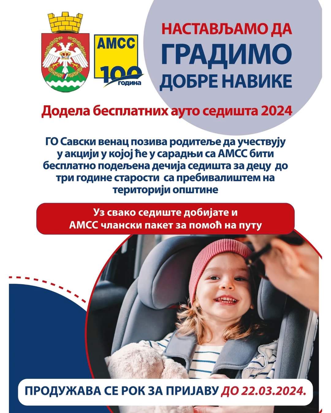Opština Savski venac je u saradnji sa Auto-Moto Savezom Srbije i ove godine obezbedila auto-sedišta za decu do tri godine starosti rođenu od 04.03.2021. do 15.03.2024. godine koja imaju prebivalište na teritoriji opštine.