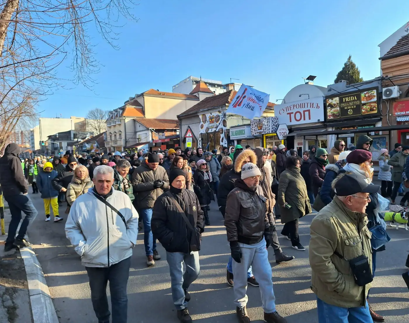 Najpre su se, na protestu pod nazivom „Ne pristajemo, ne ćutimo“, okupili ispred Prve niške gimnazije „Stevan Sremac“, a potom su organizovali i protestnu šetnju do zgrade niškog Univerziteta.