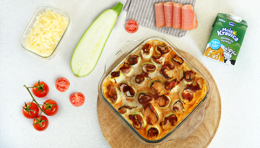 Kombinacija Moja Kravica krem sira, pršute i Imlek gaude čini ove rolnice ukusnim i sočnim, a tikvice i pavlaka za kuvanje im daju laganu, prolećnu notu.
