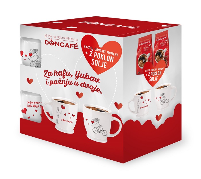 Uz ovaj čarobni napitak, započeli su mnogi trenuci radosti i vedrine, a u susret Danu zaljubljenih, Doncafé je pripremio poklon pakovanje u kojem se nalaze 2x200g Doncafé Moment kafe, a u okviru kojeg dobijate i dve šoljice. One su oslikane motivima ljubavi i predstavljaju znak pažnje svim pravim ljubiteljima kafe koji vole zajedno da provode vreme. Verujemo da će ove šoljice postati omiljene za početak svakog jutra.