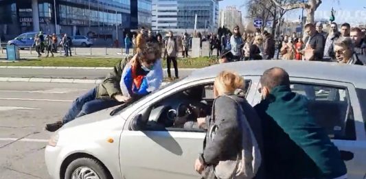 Protest: Auto „nosio“ na haubi mladića koji je blokirao ulicu kod Palate Srbija
