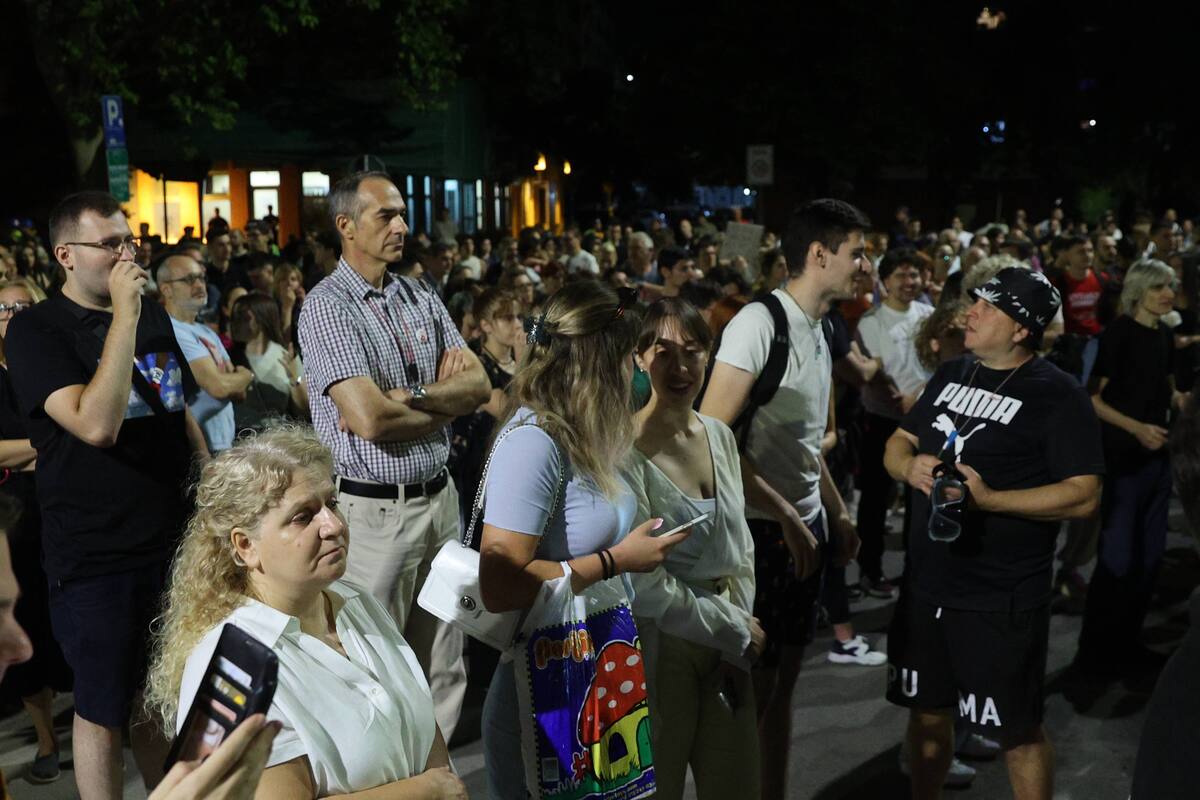 Kako je preneo portal lista Danas, atmosfera na protestu u centru, kod zgrade opštine, bila je mirna, sa razglasa je puštana muzika, vijorile su se srpske zastave.