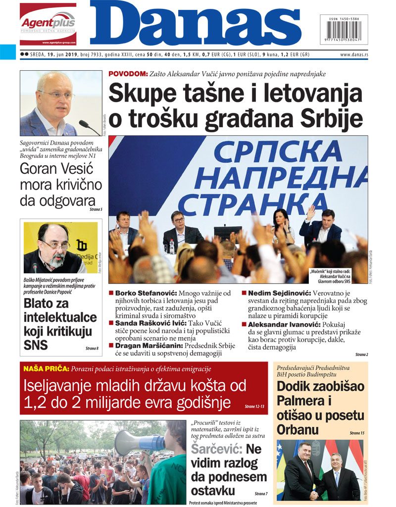 ZAKAZAN PROTEST ĐAKA ISPRED MINISTARSTVA PROSVETE – Osmaci nekoliko beogradskih škola protestovali su juče ispred Ministarstva prosvete zahtevajući da se poništi završni ispit i da se u srednje škole upišu prema svom uspehu, a nakon protestne šetnje preko Slavije i Resavske ulice, pozvali su na novi protest danas u 13 sati.