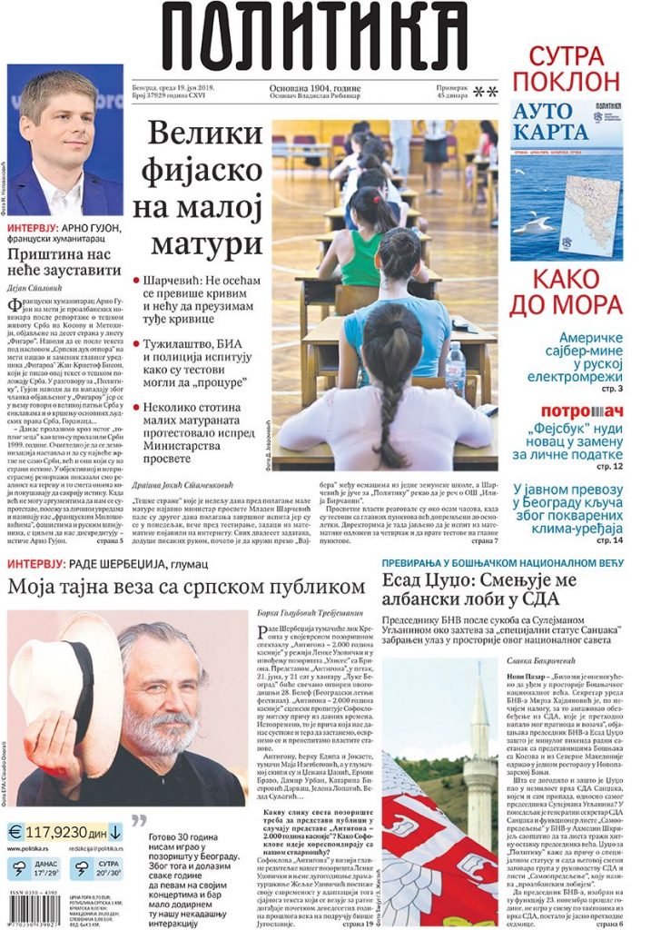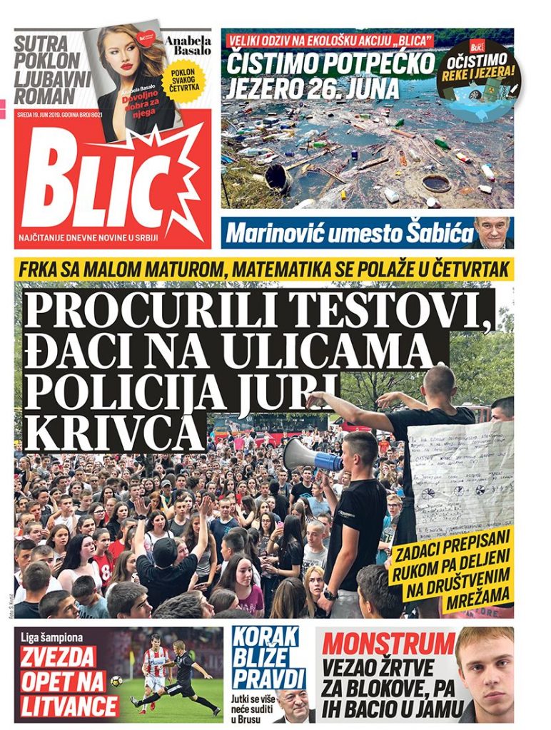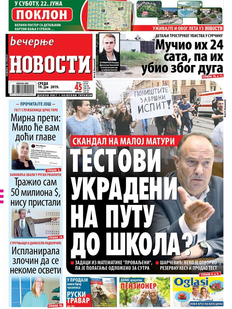 Đaci su ispred Ministarstva prosvete uzvikivali „Nećemo prijemni“, „Ostavka, ostavka“ i nosili transparente sa natpisima „Kradete nam budućnost“ i „Poništite završni ispit“, zahtevajući da se poništi mala matura zbog toga što su u javnost procureli zadaci iz matematike i razreši ministar prosvete Mladen Šarčević.